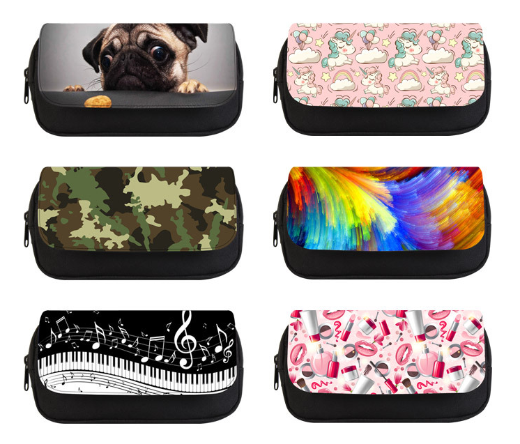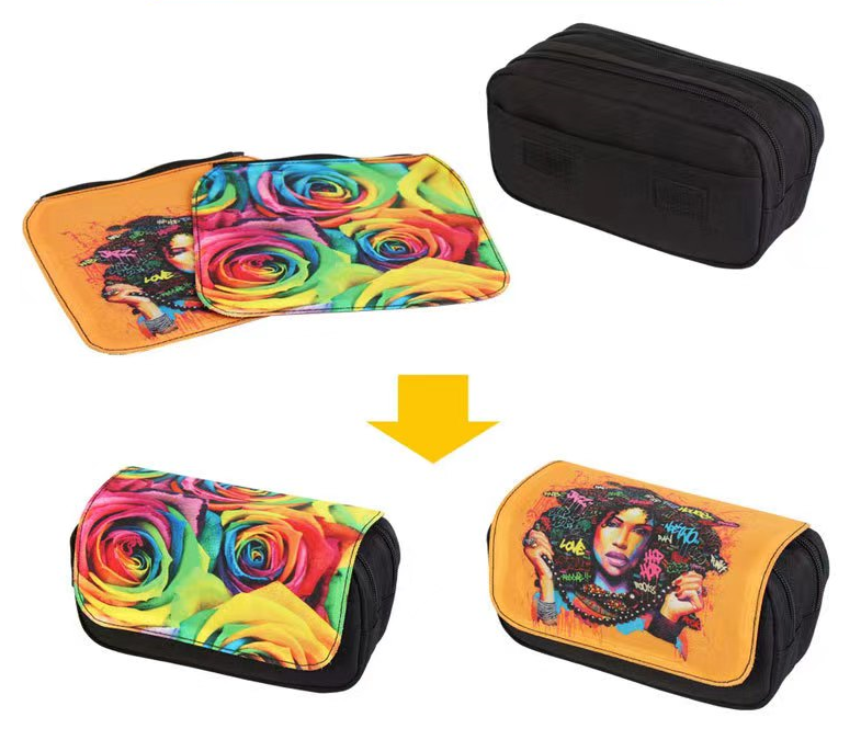 Two Layers Travel Custom Logo Printing Sublimation Blank Pen Holder Bags Make Up Cosmetic Bag Pouch Bag with Zipper