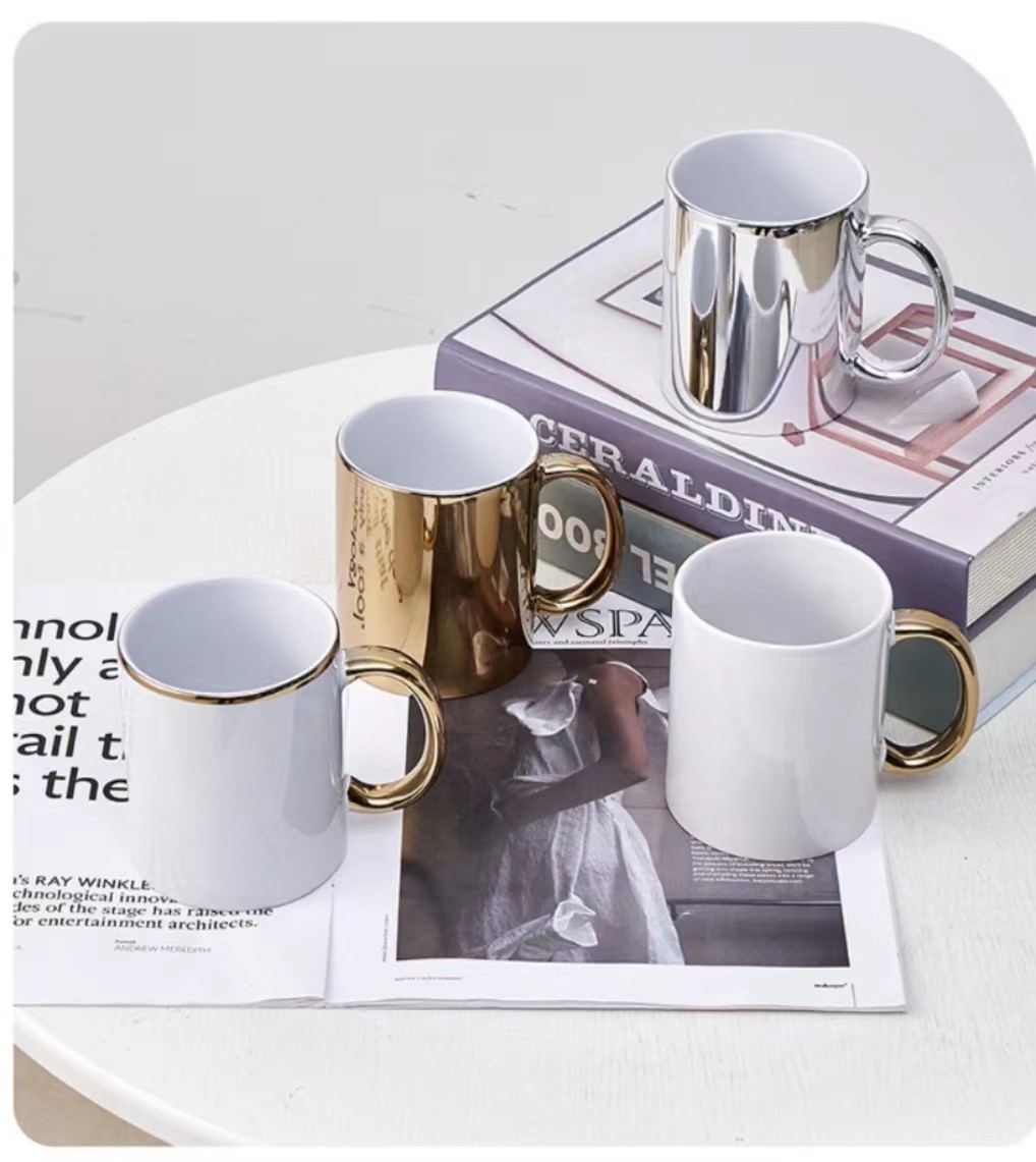 11oz Gold Plated Ceramic Mug Silver Plated Coffee Mugs Electroplated Ceramic Coffee Cup Metal Plating Ceramic Travel Mugs